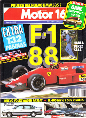 EXTRA FORMULA 1. Gran Prueba Comparativa: Peugeot 405 Mi-16/Austin Montego Turbo/Alfa Romeo 75 Turbo/Citroën BX GTi 16v/Renault 21 Turbo. Prueba del BMW 535i.