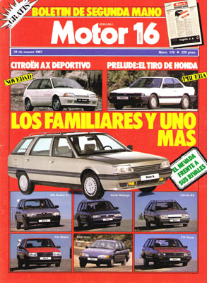 Presentación del Citroën AX Sport. Expo Ocio '87. Gran Prueba Comparativa: Alfa Romeo 33 Giardinetta/Austin Montego State Efi/Citroën BX 19 Break/Fiat Regata 100 IE Weekend/Ford Sierra Familiar/Volkswagen Passat CL TD Variant/Renault 21 Nevada. Prueba del Honda Prelude EX.