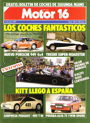 Fuera de serie: el coche fantástico llega a España. Prueba del Alfa Romeo 75 Twin Spark. Prueba Comparativa: Lancia Delta HF Turbo/Opel Kadett GSi 2.0. Homenaje a Ferrari en París. 500 Millas de Indianápolis. Rallye Cantabria. Gran Premio de Mónaco de F1.