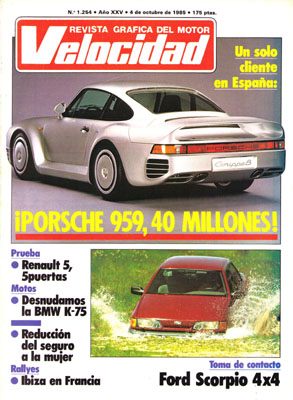 Toma de contacto con el Ford Scorpio 4x4. Porsche 959. Historia de la Fórmula 1: Gilles Villeneuve. Prueba del Renault 5 GTS 5 puertas. Prueba de la BMW K 75. Citroën BX-4TC.
