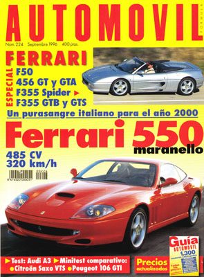 ESPECIAL FERRARI. Prueba del Ferrari 456 GTA. Prueba del Ferrari F355 Spider. Dossier: la gama Ferrari. Contacto con el Ferrari 550 Maranello. Prueba del Audi A3 1.8. Prueba Comparativa: Citroën Saxo VTS 16v/Peugeot 106 GTi 16v. Gran Premio de Alemania de F1. Gran Premio de Hungría de F1. Ferrari 365 GTB/4 "Daytona".
