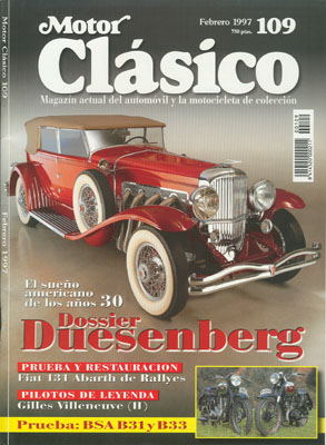 ESPECIAL DUESEMBERG: Duesemberg SJ. Duesemberg J de 1929. Los hermanos Duesemberg. Historia de Motor Ibérica: vehículos industriales y agrícolas Ebro. Prueba y restauración del Fiat 131 Abarth Gr. 4 ex-Serviá. Historia de Gilles Villeneuve. Prueba de la BSA B31 y B33 de 1950.