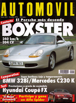 Contacto con el Porsche Boxster. Diseño: Centro Porsche de I+D. Prueba del Hyundai Coupé 2.0 16v FX. Prueba Comparativa: BMW 328i/Mercedes C230 Kompressor. Gran Premio de Bélgica de F1. Gran Premio de Italia de F1.