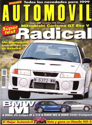 Prueba del BMW Z3 Coupé 2.8 y M. Prueba Comparativa: BMW 323ti Compact/Lancia Delta HF 2.0 Turbo HPE. Prueba del Mitsubishi Carisma GT Evo V. Contacto con el Maserati 3200 GT. Gran Premio de Luxemburgo de F1. Rallye San Remo. Rallye Príncipe de Asturias y Coruña.