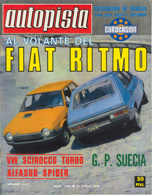 Toma de contacto con el nuevo Fiat Ritmo. Consultorio. Le Mans. Campeonato de Europa de Rallyes: Rallye de las Arenas de Oro. Gran Premio de Suecia de F1. Volkswagen Scirocco Turbo.