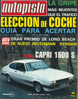 Los turismos españoles, clasificados en "categorías de utilización". Retromobile 1978. Consultorio. Prueba del Ford Capri 1600 S. Rallye Safari. Thruxton F2. V Rallye Maspalomas. Publicidad en color del Chrysler 150.