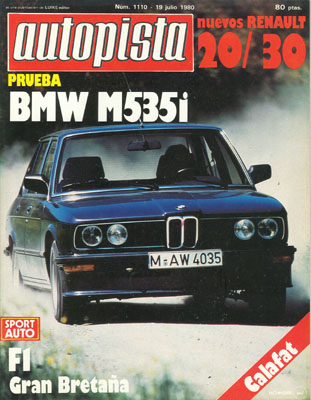 Prueba del BMW M535i. Renault gama 81. Consultorio. El delirio americano de los dragsters. II Gran Cross del Cantábrico. Circuito Calafat: Trofeo Vacaciones. Gran Premio de Gran Bretaña.