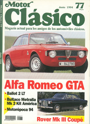 Prueba del Ballot LT2 de 1923. Presentación del Rover 3 Litre Mk III Coupé de 1967. Historia de los coches eléctricos (II). Prueba de la Bultaco Metralla Mk2 Kit América de 1967. Historia de Fernando Aranda (II). Motor Epoca 94. Tour de France Auto. Prueba del Alfa Romeo GTA 1300 Junio.