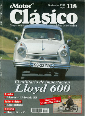 Presentación del Lloyd LC 600 de 1957. Prueba del Maserati Merak SS de 1975. Historia de Lloyd. Los Bugatti 35. La vuelta al mundo en Delaunay Belleville. Presentación de la Bultaco Metralla Mk2 de 1969. III Retromóvil Murcia.