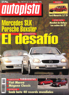 Prueba Comparativa: Fiat Marea TD 100/Renault Megane Classic 1.9 dT. Prueba Comparativa: Porsche Boxster/Mercedes SLK 230K. Suplemento especial dedicado a Kia. Prueba del Ford Maverick 2.7 TD GLS 3p. Coche del Año 1997. Presentados en Cataluña los World Rallye Cars del 97.