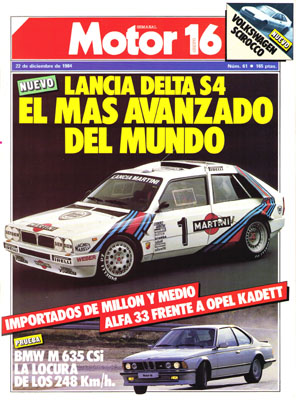 Nuevo Lancia Delta S4. Prueba Comparativa: Alfa Romeo 33 Q.O./Opel Kadett 1.6. El Chrysler Imperial de Sara Montiel. Prueba del BMW M635 CSi. 25 años del Mini. Fuera de serie: Bentley Silent Speed Six. Viajes: Serra da Estrela. Un Pegasoa en el desierto.