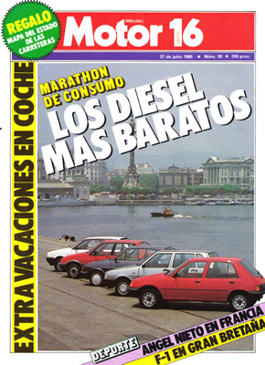 Novedades en el Peugeot 505. Prueba Comparativa de los Diesel pequeños: Peugeot 205 SRD/Citroën Visa D/Fiat Uno DS/Ford Fiesta D/Seat Ibiza GLD. Extra vacaciones en coche. Gran Premio de Inglaterra de F1.