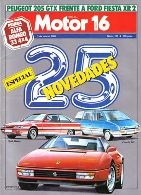 25 novedades para 1986. Prueba Comparativa: Ford Fiesta XR2/Peugeot 205 GTX. Prueba del Alfa Romeo 33 Giardinetta 4x4. Prueba de la Honda VFR 750 F. TAC: escuela de conducción sobre hielo. Rallye Costa Brava.