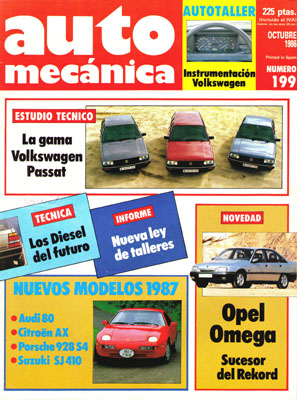 Estudio técnico de la gama Volkswagen Passat. Nueva normativa de talleres. Nuevo Opel Omega. Técnica: aislamiento térmico de motores. Autotaller: la instrumentación de los Volkswagen. Consultorio técnico. Nuevo Audi 80. Tecnologías de vanguardia: los motores Diesel. Presentación del Porsche 928 S4. La instrumentación en el automóvil.