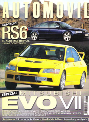 Prueba Comparativa: Mitsubishi EVO V/EVO VI/EVO VI Makinen/EVO VII. Prueba Comparativa: Mitsubishi EVO VII/Subaru Impreza WRX STI. Contacto con el Audi RS6. Prueba Racing del Mitsubishi EVO VII Gr.N. Fórmula 1: Gran Premiode Mónaco y Canadá. 24 Horas de Le Mans. Campeonato de España de GT: Jarama. Rallye de Argentina y Acrópolis. Clásicos: Maybach.