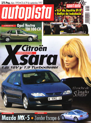 Prueba del Audi A8 V6 2.5 TDI. Prueba Comparativa: Citroën Xsara 1.8 16v VTS/1.9 TD. Contactos: Opel Vectra TDI y Sintra 2.2 TDI, Daewoo Nubira 5 puertas y Station Wagon. Futuro Mazda MX5. Zender Escape 6. Claudia Schiffer y el Citroën Xsara. Record de velocidad. Pedro Martínez de la Rosa. Nacional de Rallyes de Tierra. Rallye de Indonesia. F1 en Austria.
