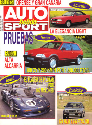 Nuevos Citroën AX GTi y Audi Cabriolet. Prueba del Jaguar XJR 15. Prueba del Volkswagen Golf GTD. Raid Alta Alcarria. Rallye de Orense. Rallye de Gran Canaria. Entrevista con Iñigo Lilly.