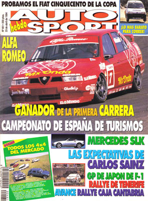 Neumáticos Pirelli Sistema P Zero. Nuevo Mercedes SLK y Ford monovolumen. Gran Prueba Comparativa Todo Terreno: Lada Niva/Nissan Terrano II 2.4 SGX/Opel Frontera 2.3 TD/Mitsubishi Montero V6/Suzuki Vitara/Jeep Cherokee/Land Rover Discovery/Suzuki Samurai/Range Rover TDi/Ford Maverick. Gran Premio de Japón de F1. Presentación del XXX Rallye Cataluña-Costa Brava. Villa de Adeje-Tenerife. Avance Rallye Caja Cantabria. Entrevista a Carlos Sainz. Prueba Racing del Fiat Cinquecento "Tierra".