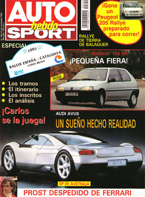 Gran Premio de Australia de F1. Audi Avus, deportivo de futuro. Clásicos: Alfa Romeo Montreal. Prueba del Peugeot 106 XR. T.R.J. Competición: especialistas en copas. Rallye España-Cataluña. Revival: Rallye San Remo. Rallye RACE Balaguer. JJ Cobas: informática, telemetría y otras tecnologías.