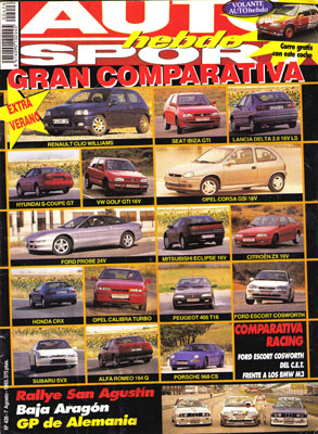 • OPEL CORSA GSI 16V/SEAT IBIZA GTI/RENAULT CLIO WILLIAMS/HONDA CIVIC CRX VTI/HYUNDAI S-COUPÉ GT/LANCIA DELTA 2.0 16V LS/VOLKSWAGEN GOLF GTI 16V/PEUGEOT 405 T16/ALFA ROMEO 164 QUADRIFOGLIO/FORD PROBE 24V/FORD ESCORT RS COSWORTH/OPEL CALIBRA TURBO 4X4/PORSCHE 968 CS/SUBARU SVX