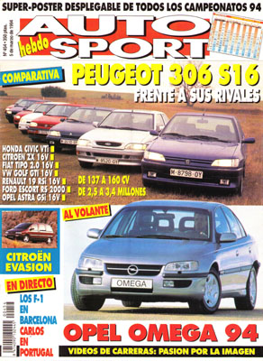 Nuevo Citroën Evasión. Prueba del Peugeot 306 16v. Prueba Comparativa: Peugeot 306 16v/Citroën ZX 16v/Fiat Tipo 2.0 16v/Ford Escort RS 2000/Honda Civic VTi/Opel Astra GSi 16v/Renault 19 RSi 16v/Volkswagen Golf GTi 16v. Contacto con el nuevo Opel Omega. Temporada '93 de velocidad en tierra. Entrevista con Angel Castro. Productoras de vídeo: locos por la imagen. Fórmula 1: entrenos en Montmeló. Mundial de Rallyes: entrenos en Portugal.
