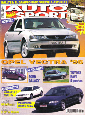 Nuevo Opel Vectra. Prueba Comparativa: Audi A4 1.8 Turbo Quattro/Ford Mondeo Sport 2.0 Si 4x4. Al volante del Toyota RAV4 cinco puertas. Al volante del Ford Galaxy 2.0 y 2.8 V6. Gran Premio de Francia de F1. Carreras en el Circuito de Albacete. Campeonato de Francia de Rallyes. Todas las competiciones regionales. XI Subida a Santo Emiliano. Avance Rallye de San Agustín.
