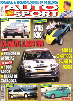Nuevo Lotus Echo. Presentación del nuevo Volkswagen Polo. Nuevo Peugeot 306 Sedán. Rallye 1000 Lagos. Rallye de Zaragoza. Carreras en Montmeló. Raid Montes de Cuenca. Todas las competiciones regionales. Gran Premio de Bélgica de F1. Avance Rallye Príncipe de Asturias.