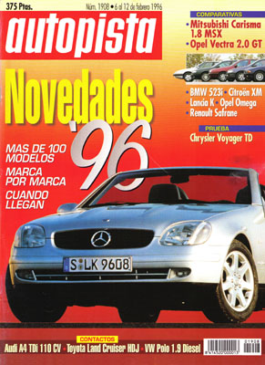 Prueba del Chrysler Voyager 2.5 TD SE. Calendario de novedades ´96. Prueba Comparativa: BMW 523i/Citroën XM V6/Lancia Kappa 2.4 LS/Opel Omega CD 2.5 V6/Renault Safrane V6i. Prueba Comparativa: Mitsubishi Carisma MSX/Opel Vectra GT 2.0 16v. Contacto con el Volkswagen Polo Diesel. Contacto con el Audi A4 TDi 110 CV. Técnica: los híbridos Renault. Rallye de Suecia. 24 Horas de Daytona.