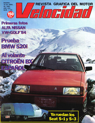 Prueba del BMW 520i. Nuevos Alfa Romeo 33 y Arna. Nuevos Fiat 127. Ya ruedan los Seat S-1 y S-3. Primeras fotos del nuevo Volkswagen Golf. Toma de contacto con el Citroën BX. Ligier/Derbi JS 6. Consultorio técnico del lector. El tacógrafo, elemento clave de la seguridad vial. Rallye Montseny-Guillerías. Publicidad del Alfa Romeo Alfasud TI 105 CV. Fórmula 2 1983.