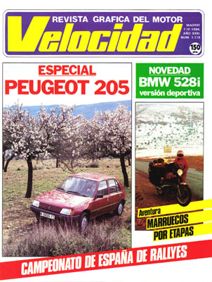 ESPECIAL PEUGEOT 205. El mundo del seguro, en cifras. Presentación del BMW 528i Sport. Pratola Serra, la factoría del "Arna". Expo-ocio ´84. Consultorio técnico del lector. Aventura: Marruecos, por etapas. Subida a la Manzaneda. Santacreu, líder del Campeonato de Rallyes.