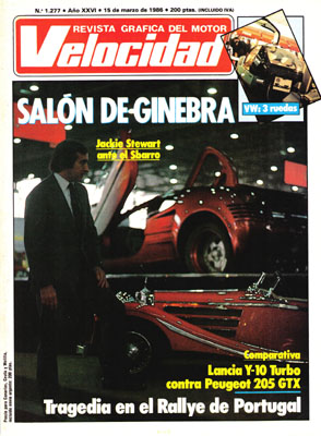 Salón de Ginebra. Toma de contacto con los Volkswagen Audi del '86. Consultorio técnico del lector. Gama Ebro de ligeros y medios. Prueba Comparativa: Autobianchi Y10 Turbo/Peugeot 205 GTX. Museo del Automóvil en Barcelona. Prueba del Opel Kadett 1.6 GLS 4p. Test de la Benelli 900 Sei. Gran Premio de Brasil de F1. Entrevista a Alfonso García de Vinuesa. Rallye de Portugal.