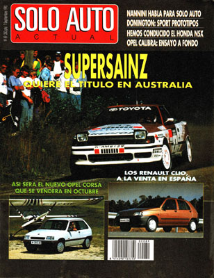 Sport-Prototipos en Nürburgring y Donington. Andrés Vilariño, de nuevo campeón de Europa de Montaña. Cartas de los lectores. Javier del Arco entrevista a Alessandro Nanini. Rallye de Osona. Gran Premio de Alemania, Hungría y Bélgica. Nuevo Audi Coupé S2. Raid Transpaña. Rallye 1000 Lagos, gran victoria de Carlos Sainz. Copa de España de Rallyes. Prueba del Opel Calibra 2.0 16v. Presentación del Renault Clio. Contacto con el Toyota Previa. Contacto con el Honda NSX.