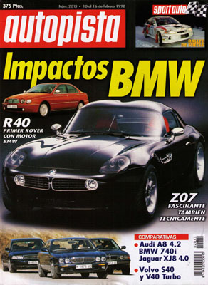 Nuevo BMW Z07 (Z8). Entrevista con Carlos Muñoz-Repiso, director general de Tráfico. Prueba Comparativa: Audi A8 4.2 Quattro/BMW 740i/Jaguar XJ8 4.0. Próximo Rover 600. Consultorio del lector. Actualidad: nuevas vías para 1988. Globalización del Corsa: métodos de Opel España en Argentina. Prueba del Volvo S40 y V40 2.0 T. HDi, la inyección directa del grupo PSA. Antonio Zanini, 50 años de un mito. Rallye de Suecia.