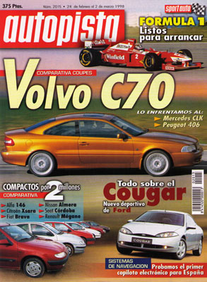 Nuevo Ford Cougar. Prueba Comparativa: Volvo C70/Mercedes CLK 320/Peugeot 406 V6 Coupé. Futuros Volkswagen, Porsche y Saab. Contacto con el nuevo Mazda MX-5. Salón de Chicago. Consultorio del lector. Prueba Comparativa: Alfa Romeo 146 1.4 Lujo/Citroën Xsara 1.4 SX 5p/Fiat Brava 1.4 SX/Nissan Almera 1.4 GX 5p/Renault Mégane 1.4 RN 5p/Seat Córdoba 1.6 SX. Contacto con el Hundai Atos. Nuevo Nissan Patrol GR. El sistema de navegación para el automóvil llega a España. Contacto con el Chrysler Prowler. La F1 calienta motores. Trofeo Andros sobre hielo.