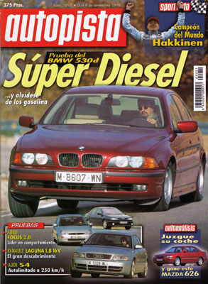 Prueba del Audi S4. Prueba del BMW 530d. Entrevista con el Dr. Ferenc Anisits, director de I+D de motores Diesel de BMW. Nuevos Mercedes Clase S. Contacto con el SsangYong Korando 2.3 TDI. Prueba del Renault Laguna 1.8 16v RXE. Consultorio del lector. Prueba del Ford Focus 2.0i 16v Trend. Rallye de Australia. Rallye de Salou. Gran Premio de Japón de F1. Mika Hakkinen.