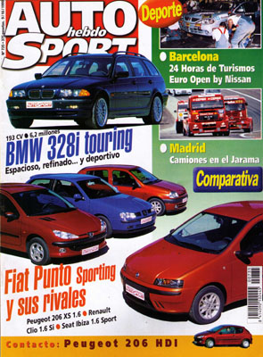 Al volante del Peugeto 206 HDi. Prueba del BMW 328i Touring. Prueba Comparativa: Fiat Punto Sporting/Seat Ibiza 1.6 Sport/Renault Clio 1.6 Si/Peugeot 206 XS 1.6. Euro Open by Nissan en Montmeló. Camiones y Copa Mégane en el Jarama. 24 Horas de Barcelona. Todas las pruebas regionales. Reportaje sobre el equipo Repsol Kremer. Avance San Remo. Mundial de Rallyes: posibilidades de Carlos Sainz.