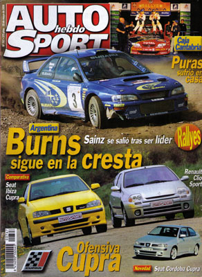 Prueba Comparativa: Seat Ibiza Cupra/Renault Clio Sport. Nuevo Seat Cordoba Cupra. 50º Aniversario de SEAT. Al volante del Audi Allroad Quattro. Rallye de Argentina. Rallye Caja Cantabria. Europeo de camiones en Valencia. Todas las pruebas regionales. Trofeo Ibérico de Históricos: Estoril. Previo Baja España.