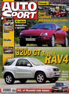 Prueba del Alfa Romeo 156 Sportwagon 2.0 Selespeed. Al volante del Toyota RAV4. Al volante del Maserati 3200 GTA. Al volante del Hyundai XG. G.P. de Francia de F1. GT's y Racing Festival en Albacete. Guía del Rallye de Avilés. Todas las pruebas regionales. Tests Citroën Xsara T4 WRC de Tierra. Baja Portugal 2000. Copa de Clásicos.