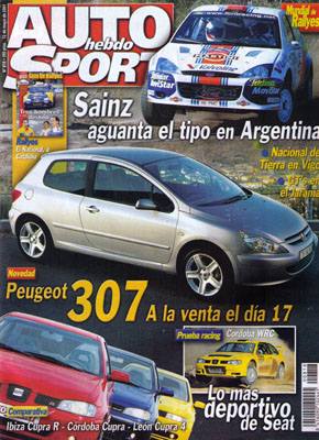 Nuevo Peugeot 307. Prueba Comparativa: Seat Ibiza Cupra II/Seat Cordoba Cupra/Seat Leon Cupra 4. Nacional de GT: Jarama. Rallye de Argentina. Guía del Rallye Salou. Nacional de Tierra: Vigo. Todas las pruebas regionales. Autocross en Talavera de la Reina. Prueba del Seat Cordoba WRC EVO III.