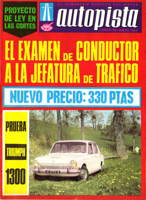 500 Millas de Brands Hatch. Gran Premio de Alemania. Volkwagen presenta innovaciones en su "Escarabajo". El primer coche patrulla de Salou. Prueba del Triumph 1300. Preguntas y respuestas sobre el cinturón salva vidas. Precios al contado de los turismos nacionales.