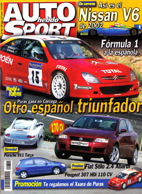 Nuevo Porsche 911 Targa. Prueba del Fiat Stilo 2.4 Abarth. Al volante del BMW Serie 7. Prueba del Peugeot 307 HDI XS 110. Rallye de Córcega. Rallye de Cantabria. Baja Porta de Ravessa. Todas las pruebas regionales. Rallye Centenario. Subida Isla de Ibiza.