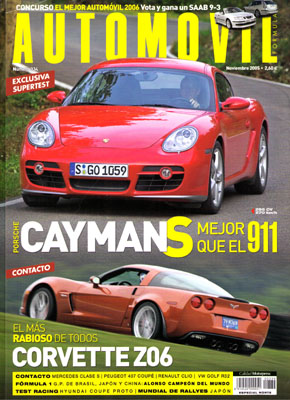 Prueba del Porsche Cayman. Contactos: Volkswagen Golf R32, Chevrolet Corvette Z06, Peugeot 407 Coupé, Mercedes Serie S, Renault Clio, Saab 9-5. Campeonato de España de GT: Albacete y Jerez. Prueba Racing del Hyunadai Coupé V6R Proto. Fórmula 1: Brasil, Japón y China. Entrevista a Fernando Alonso. Fórmula 1: los pioneros y el campeón. Rallye de Japón. Rallye Príncipe de Asturias.