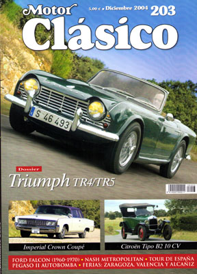 Dossier: Triumph TR4/TR5. Ferias: Hershey, Manheim, Valencia, Alcañiz y Zaragoza. Prueba del Citroën B2 10 CV de 1924. Prueba del Imperial Crown de 1965. Historia: Ford Falcon (1960-1991), Pegaso II Autobomba, Nash Metropolitan. A pie de calle: Peugeot 404 y Seat 600 E. Proyecto de restauración de una Sanglas 400.