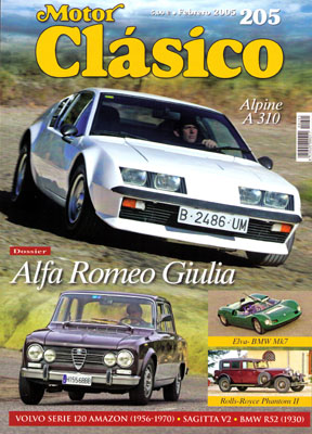 Dossier: Alfa Romeo Giulia. Prueba del Rolls-Royce Phantom II Limusina. Prueba del Renault A 310 V6. Historia: Volvo serie 120 Amazon (1956-1970). Sagitta V2. A pie de calle: Opel Kapitan y Citroën Dyane 6. Prueba de la BMW R52 de 1930. Prueba: Elva-BMW Mk7 de 1964.
