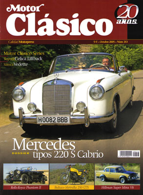 Dossier: Mercedes 220 S Cabrio. Motor Clásicos Series. Prueba: Rolls-Royce Phantom II Tourer Derby. Prueba: Hillman Super Minx V8. Prueba: Toyota Celica 1600 GT Liftback de 1976. Ayer y hoy: Simca Vedette (1954-1962). Historia: Kaiser Aerodinámico. Prueba: Bultaco Metralla GTS 250.