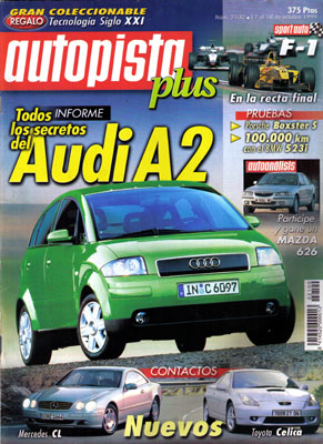 Contacto: Mercedes CL, Toyota Celica, Pininfarina Metrocubo, Honda Insight, Volkswagen Polo 2000, Citroën Xsara 1.6i Auto-Activa. Prueba de 100.000km: BMW 523i. Prueba del Audi TT 1.8 T Quattro 180 y 225 CV. Informe sobre el Audi A2. Hispano Suiza Alfonso XIII. Jaguar XK 180. Publicidad y automóvil en España. Publi-reportaje: Chrysler Neon. Prueba del Porsche Boxster S. Nace Autopista Online. Resisntecia en La Mans.