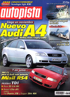 Contacto: Mercedes Vision SLR, Mercedes SLK, Renault Clio 1.4 16v. Nuevo Audi RS4. Nueva generación del Audi A4. Prueba del Rover 25 2.0 SDi 3p. El progreso y sus orígenes (XX), Porsche 911. Salón de Chicago. Prueba Comparativa: Fiat Punto 1.9 JTD ELX/Peugeot 206 1.9 HDI/Renault Clio 1.9 dTi Tech Road. Rallye de Suecia.