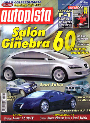 Salón de Ginebra. Prueba del Hyundai Accent 1.5 GLS. Guía 2000 Fórmula 1. El progreso y sus orígenes (XXIII), Ferrari 512 BB. Prueba Comparativa: Citroën Xsara Picasso 1.6/Renault Scenic 1.6 RXE. Club Jeep Adventure. Clásicos: la Edad de Oro del Cabrio. Entrevista a Andrés Vilariño.