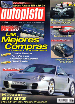 Nuevo Porsche 911 GT2. Prueba del VW Passat TDi 130 CV. Prueba Comparativa: BMW 520i/Peugeot 607 2.2. Prueba Comparativa: Citroën Xsara 1.6 SX/Ford Focus 1.6 Ghia/Renault Megane 1.6 RXE/Seat León 1.6 Signa. Prueba Comparativa: MGF Steptronic/Toyota MR2 SMT. Ayer y hoy de Hispano-Suiza.