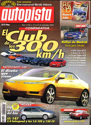 Prueba del Alfa Romeo 147 2.0 Selespeed. Contacto: Subaru Impreza WRX, Nissan Hypermini, Lexus LS 430, Chrysler ESX3. Nuevos concept cars GM 2001. Gran Prueba Comparativa: Alpina B12/Brabus SL 7.3S/Chrysler Viper GTS/Ferrari 550 Maranello/Lamborghini Diablo 6.0/Porsche 911 Turbo/Porsche 911 Ruf Turbo R. Entrevista con José María Alapont, presidente de Delphi Europa. Técnica: los frenos cerámicos de Porsche. Prueba del Toyota Celica 1.8 T-Sport. Publi-reportaje: Chrysler Neon. Rallye Montes de Cuenca. Elecciones a la FEA. Rallye de Madrid. INCLUYE SUPLEMENTO TODO TUNING: Prueba del BMW Alpina D10 Biturbo. Opel Astra 1.6 Irmscher. Prueba del VW Bora Oettinger 1.8T. Prueba del BMW 330d Nowack. Mercedes C32 AMG. Comarth S1-50. Las últimas preparaciones.